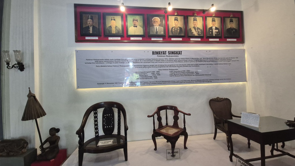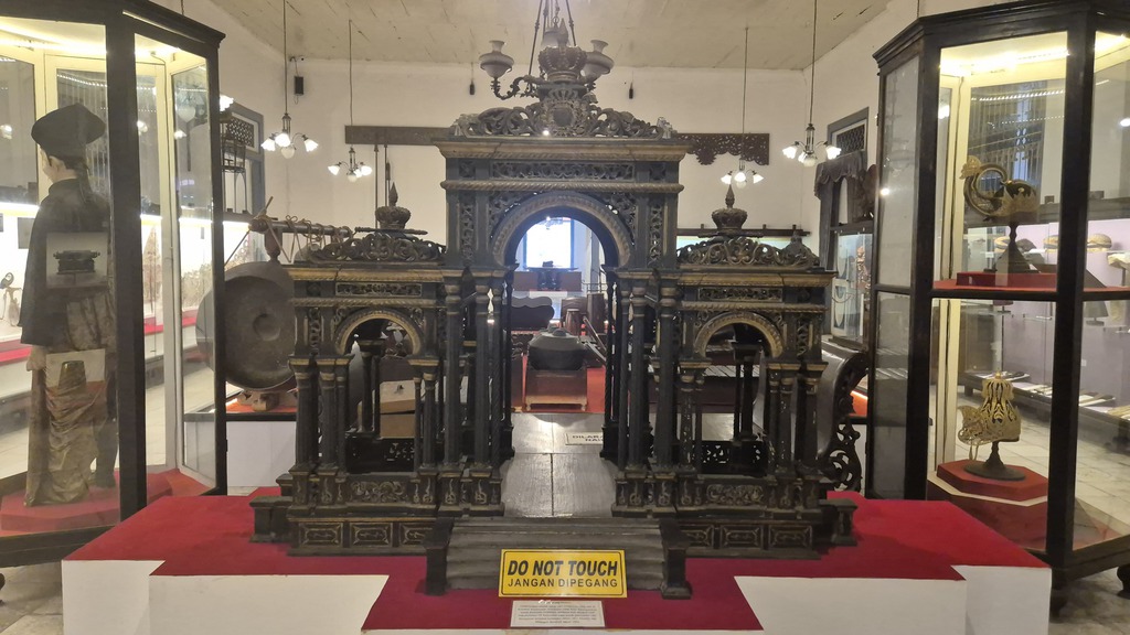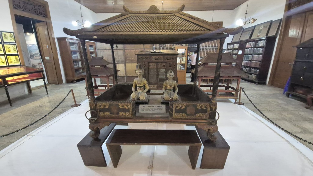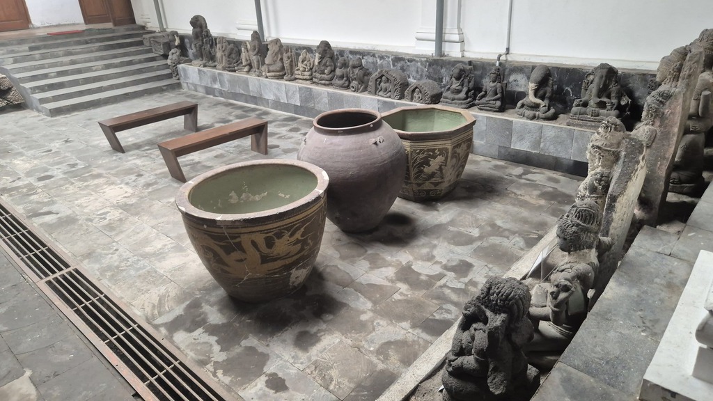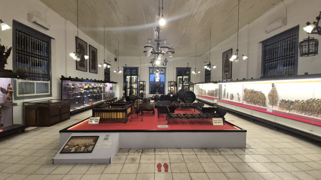 Es ist das älteste Museum Indonesiens und bietet einen faszinierenden Einblick in die javanische Kultur, Geschichte und Kunst. Gegründet: 1890, ein eleganter Kolonialbau mit weißen Wänden und Holzdecken. Ausgestellt werden Kulturgegenstände aus Zentraljava wie Keris (traditionelle Dolche), teils mit Elfenbein und Edelsteinen verziert, Wayang-Puppen und Wayang Beber-Schriftrollen, Gamelan-Instrumente, Porzellan, Masken, Kopfbedeckungen, Hindu-Statuen und riesige Vorschiffe der königlichen Flotte. Ferner gibt es eine Literatur-Sammlung alter javanischer und niederländischer Bücher. (06-11), Fotos 08.04.2026