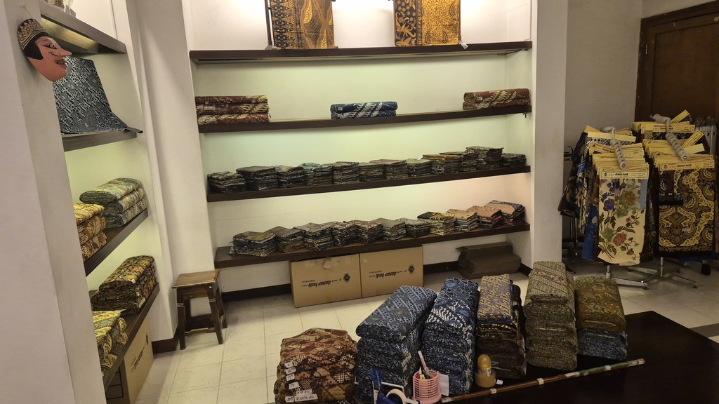 Das Museum ist ein absolutes Muss für Kultur- und Designliebhaber. Es gilt als eines der größten und bedeutendsten Batikmuseen in Südostasien. Gegründet 2000 von Santosa Doellah, dem Gründer der Batikmarke Danar Hadi. Es ist ein historisches Herrenhaus Ndalem Wuryoningratan aus dem 19. Jahrhundert, einst Wohnsitz eines Verwandten von Pakubuwono X. Über 1.000 Batikstoffe aus verschiedenen Epochen und Regionen in den Stilen Batik Keraton (Hofstil), Batik Pesisir (Küstenstil), Batik Belanda, Batik Cina und Batik Jepang sind hier zu bewundern. Jede Stoffbahn erzählt eine Geschichte – von Spiritualität über Kolonialgeschichte bis zu Mode. Besucher können in Workshops den Batikprozess live erleben und selbst ausprobieren. Es ist nicht erlaubt, Fotos zu machen - daher hier nur die öffentlichen Räume. (06-22) Fotos 08.04.2026