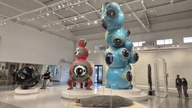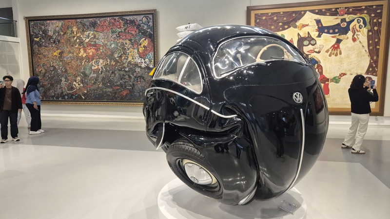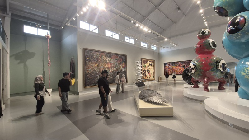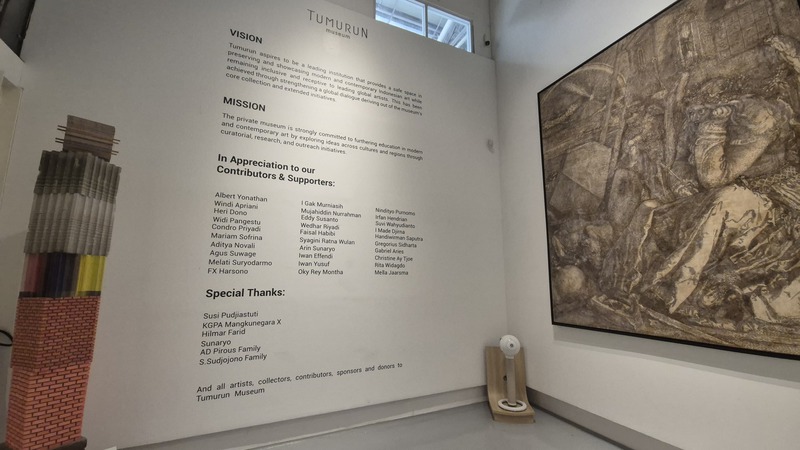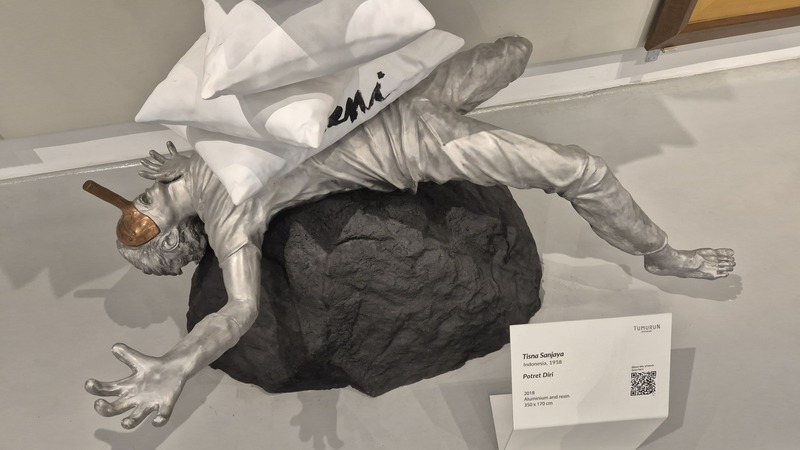 Das private Tumurun Private Museum ist besonders interessant für Kunst- und Kulturliebhaber. Es gilt als eines der spannendsten modernen Museen in Zentraljava. Die Sammlung umfasst Werke bedeutender indonesischer Künstler. Eine Mischung aus Malerei, Skulptur und Installationen bietet einen tiefen Einblick in die Entwicklung der indonesischen Kunstszene. Der Name „Tumurun“ stammt aus dem Javanischen „turun temurun“ – „von Generation zu Generation“. Die Sammlung gehört der Familie Lukminto (Gründer von Sritex) und spiegelt deren Engagement für Kunst und kulturelles Erbe wider. Das Gebäude verbindet moderne Linien mit javanischem Flair. Die Innenräume sind ruhig und minimalistisch gestaltet, sodass die Kunstwerke gut zur Geltung kommen. Es gibt wechselnde Ausstellungen, meist mit politischen, sozialen, globalen, feministischen und anderen kritischen Themen. Skulpturen, Installationen und Bilder - visuell eindrucksvoll und provokativ (06-04), Fotos 08.04.2026)