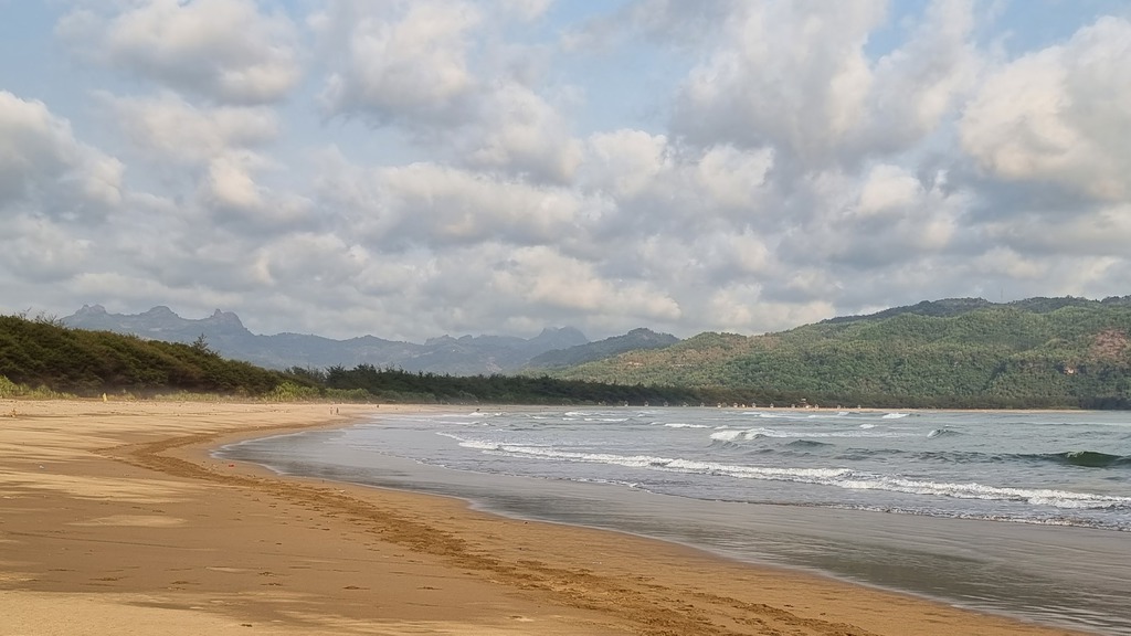 Brumbun Beach ist ein ruhiger, wenig touristischer Strand - landschaftlich reizvoll, aber eher für Einheimische und Naturfreunde geeignet als für klassische Strandurlauber. Relativ abgelegen – die Straße dorthin ist schmal und kurvig, aber landschaftlich schön. Dunkler Sand, ruhige Wellen, grüne Hügel im Hintergrund, keine großen Warungs oder Resorts.
