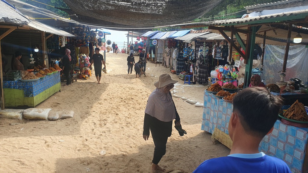Er gilt als einer der schönsten Strände der Region - mit weißem Sand, türkisfarbenem Wasser und ruhiger Atmosphäre. Korallenfelsen und sanfte Hügel – eine malerische Kulisse, Parkplatz, Toiletten, Warungs, Campingbereich