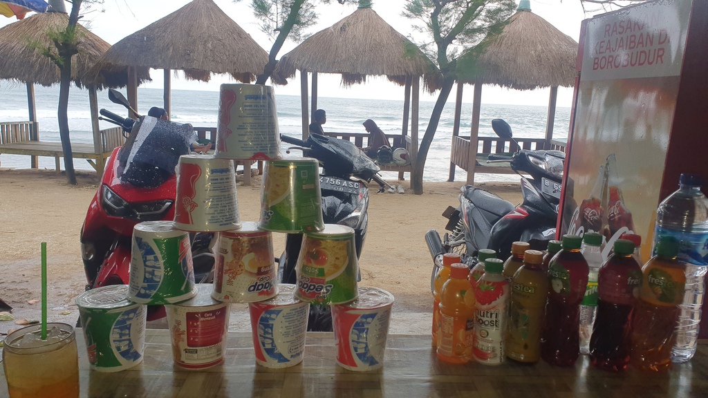 Der Pantai Mesra (auch bekannt als Pantai Ngrawe) in Gunungkidul gilt als einer der gepflegtesten und fotogensten Strände in Yogyakarta mit einer einzigartigen Kombination aus Natur und Parklandschaft. „Miami von Jogja“: Der Spitzname kommt nicht von ungefähr – der Strand bietet weißen Sand, türkisblaues Wasser und eine gepflegte Rasenfläche mit Palmen, die an eine tropische Parkanlage erinnert. Überall finden sich Fotospots, darunter Schaukeln, Stege, bunte Sitzbereiche und Küstenpfade mit Blick auf die Brandung. Der Strand ist bekannt für seine hervorragende Pflege – kaum Müll, klare Wege, saubere Toiletten.