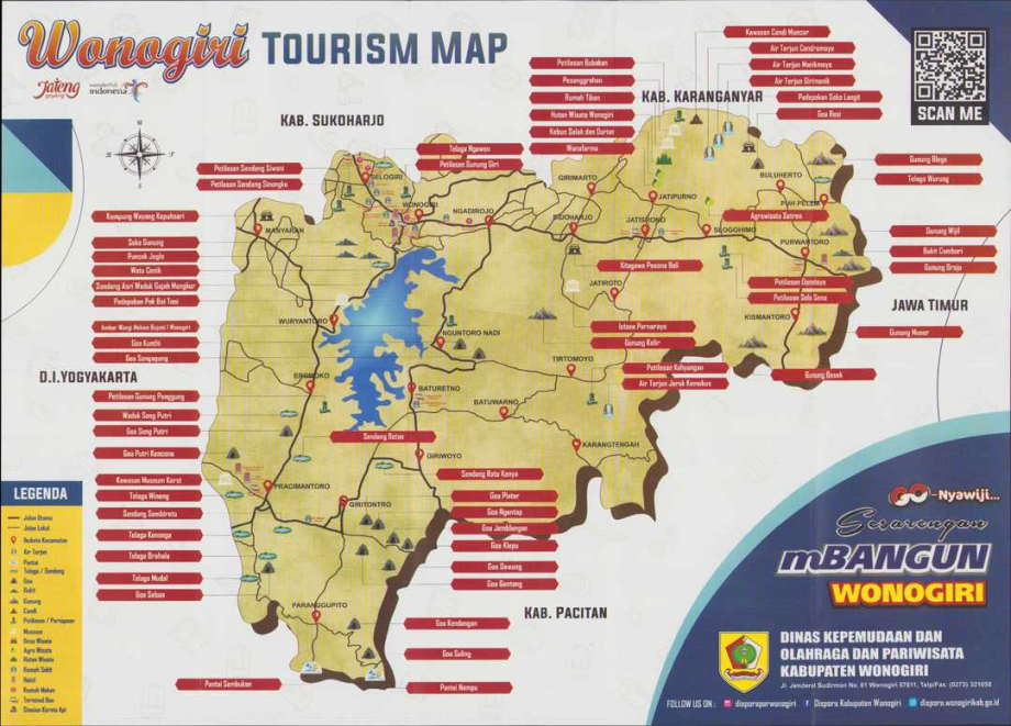 Tempat wisata dari kabupaten Wonogiri (Jarak sesuai dengan jarak dari wisma "Wonogiri Rocks")