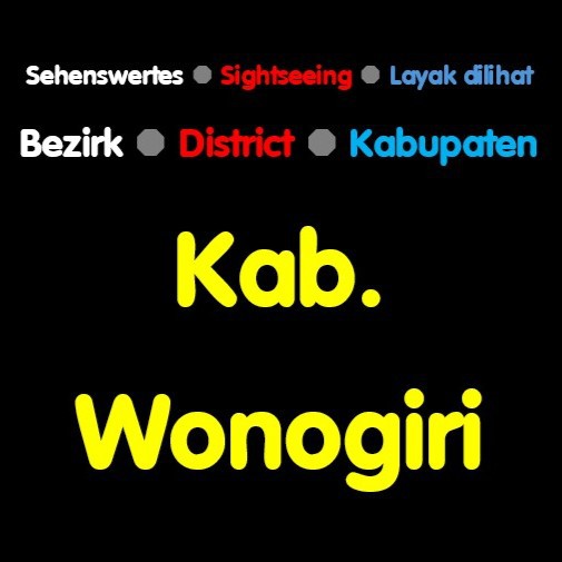 Sehenswertes aus dem Bezirk Wonogiri (Die Entfernung entspricht der Distanz vom Guesthouse "Wonogiri Rocks"). Wir freuen uns über weitere Tipps.
