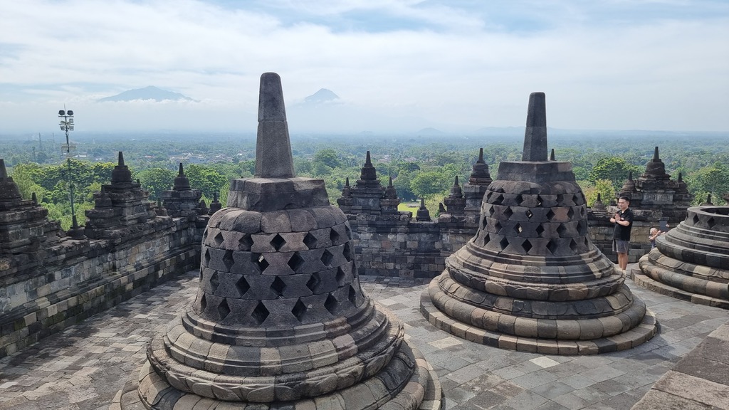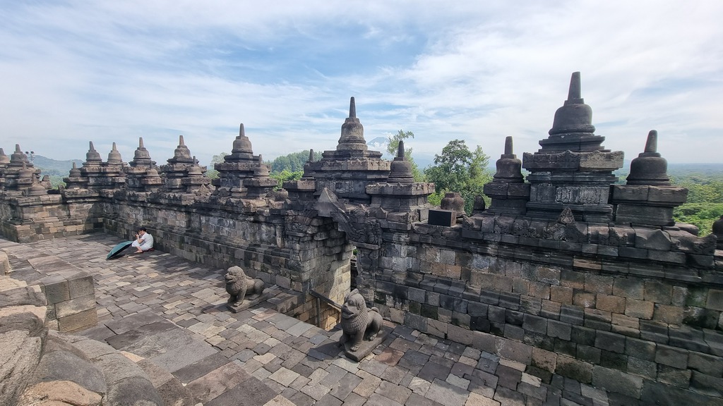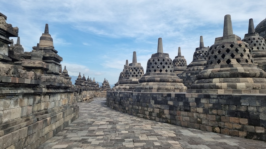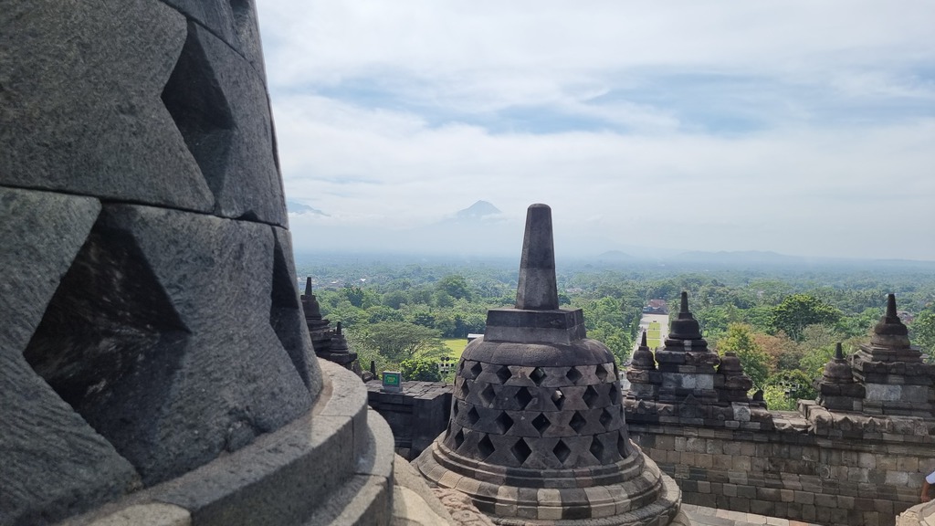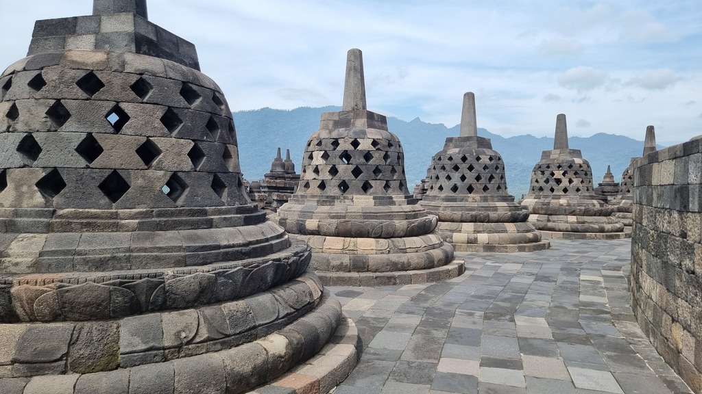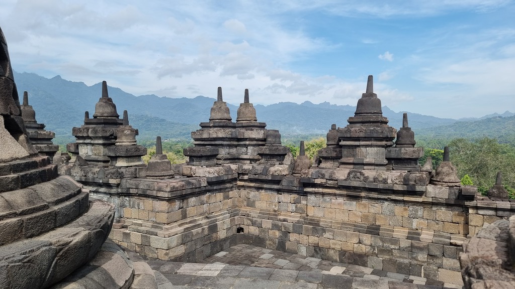 Der Borobudur ist das größte buddhistische Monument der Welt und ein Meisterwerk javanischer Architektur, Spiritualität und Symbolik. Er ist UNESCO-Weltkulturerbe, erbaut im 9. Jahrhundert unter der Sailendra-Dynastie und 1991 als Weltkulturerbe anerkannt – gilt als Wunder der antiken Welt Asiens. Er ist eine Stufenpyramide mit neun Plattformen: sechs quadratisch, drei rund. 2.672 Reliefplatten und 504 Buddha-Statuen. Die zentrale Kuppel ist von 72 durchbrochenen Stupas mit Buddhafiguren umgeben. Der Aufstieg symbolisiert den Weg zur Erleuchtung: Kamadhatu (Welt der Begierde), Rupadhatu (Welt der Form), Arupadhatu (Welt ohne Form). Eine Sonnenaufgangstour startet man am besten vom Bukit Dagi oder Punthuk Setumbu aus - ein magischer Blick auf Borobudur im Nebelmeer.