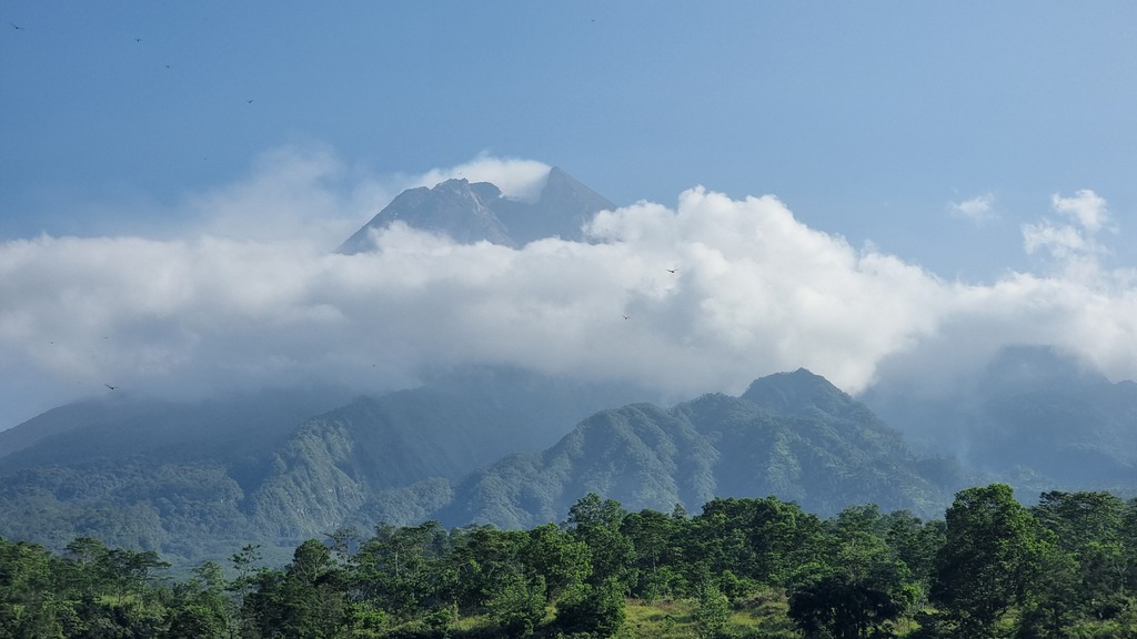 Der Merapi ist einer der aktivsten und gefährlichsten Vulkane weltweit – geologisch, kulturell und spirituell von zentraler Bedeutung für Zentraljava. Er ist ein Stratovulkan (Schichtvulkan) mit steiler Kegelform mit einer Höhe von ca. 2930 Metern. Gefährlich durch pyroklastische Ströme, Lahare (Schlammströme) und Ascheregen. Er ist ein heiliger Berg und im javanischen Glauben Sitz eines unsichtbaren Königreichs und Ort für rituelle Opfergaben durch Beamte der Keratons von Yogyakarta und Surakarta. Viele Javaner glauben, dass der Vulkan durch Respekt und Rituale besänftigt werden kann. Hierzu gibt es Opfergaben bei Labuhan Merapi – ein jährliches Ritual zur Ehrung der Geister. Beliebte Aussichtspunkte sind Kaliurang, Bunker Kaliadem, Selo (Boyolali) und es gibt geführte Jeep-Touren durch Lavafelder