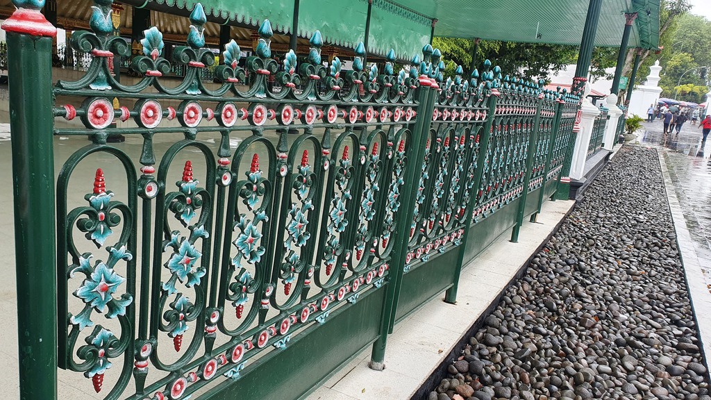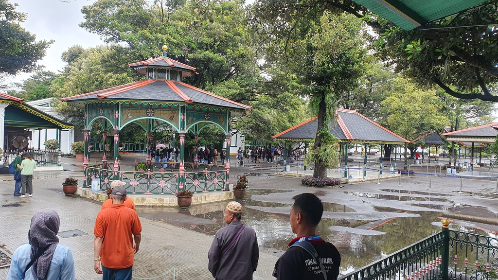Heute ist vor allem die zentrale Badeanlage gut erhalten – die anderen Teile wurden durch Erdbeben beschädigt oder sind von der Siedlung Kampung Taman überbaut. Unterirdische Tunnel (urung-urung) verbanden verschiedene Teile des Palasts und dienten als Fluchtwege. Seit 2023 ist Taman Sari Teil des „Cosmological Axis of Yogyakarta“ und als UNESCO-Weltkulturerbe anerkannt. Der Gedhong Gapura Hageng ist das prächtige Haupttor des historischen Wasserpalasts - ein architektonisches Juwel mit tiefem kulturellem und religiösem Hintergrund. Es war der ursprüngliche Haupteingang zum Wasserpalast, der im 18. Jahrhundert von Sultan Hamengkubuwono I erbaut wurde. Das Tor ist mit kunstvollen Reliefs von Vögeln und Blumen verziert, die eine sogenannte Candra Sengkala darstellen – eine symbolische Jahreszahl, die auf das Baujahr 1765 verweist. Es zeigt eine Mischung aus javanischer und portugiesischer Baukunst, was dem Ort eine einzigartige Ästhetik verleiht. Es war Teil eines Komplexes, der als Rückzugsort und Badeanlage für den Sultan und seine Familie diente. Einige Gebäude wie Sumur Gumuling und Pulo Panembung dienten der Meditation und religiösen Praxis des Sultans. Der Komplex war auch strategisch geplant mit unterirdischen Gängen (urung-urung) und Bastionen zur Verteidigung. Die angrenzenden Gassen sind Teil des Kampung Wisata Taman Sari – mit Street Art,Kunsthandwer, Batik-Workshops und Cyber-Kampung. Enge Gassen mit Vogelkäfigen, Wandmalereien und kleinen Cafés sind ideal für authentische Einblicke in das Leben der Einheimischen. (09-02)