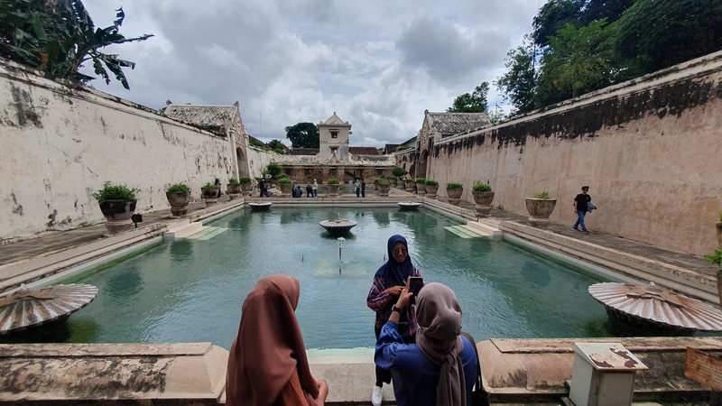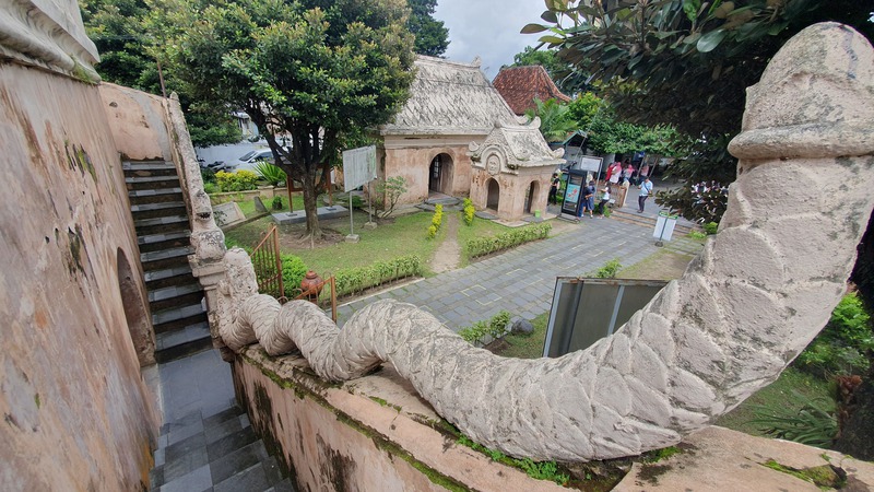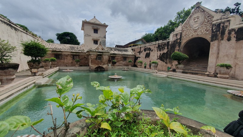 Taman Sari ist das ehemalige Wasserschloss des Sultans von Yogyakarta – ein historisches Erholungsareal mit königlichen Badeanlagen, unterirdischer Moschee und verwinkelten Gassen. Erbaut zwischen 1755 und 1790 unter Sultan Hamengkubuwono I als Teil des Kraton-Komplexes. Es diente als königliches Badehaus, meditativer Rückzugsort, Verteidigungsanlage und Ort für spirituelle Rituale. Die Architektur ist eine Mischung aus javanischem, islamischem, portugiesischem und chinesischem Stil mit Kanälen, Teichen und Pavillons. Das zentrale Badebecken (Umbul Pasiraman), in dem der Sultan seine Konkubinen beobachtete, heute ein beliebter Fotospot. Eine unterirdische Moschee (Sumur Gumuling) mit kreuzförmigem Grundriss und ikonischer Treppe – mystisch und architektonisch faszinierend. Meditationsräume & Tunnel symbolisieren die Verbindung von Erde, Wasser und Himmel - einst Orte der Meditation und Rückzugsorte für den Sultan. Exquisite Steinmetzarbeiten (Reliefs und Ornamente) mit floralen und geometrischen Mustern zieren das Schloss. Taman Sari ist ein historischer Wasserpalast, der einst als königlicher Rückzugsort diente – heute ist er eine der faszinierendsten Sehenswürdigkeiten der Stadt. Es diente als Erholungsort, Meditationsstätte, Verteidigungsanlage und geheimer Zufluchtsort für den Sultan und seine Familie. Der Name Taman Sari bedeutet auf Javanisch „blühender Garten“ – ursprünglich war der Komplex von Wasserbecken, Gärten und Pavillons umgeben. Taman Sari bestand ursprünglich aus vier Bereichen: